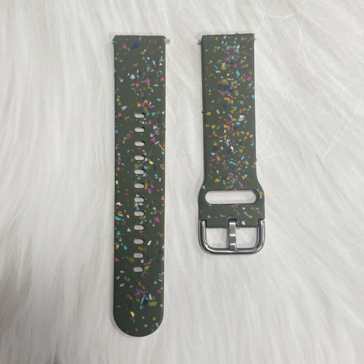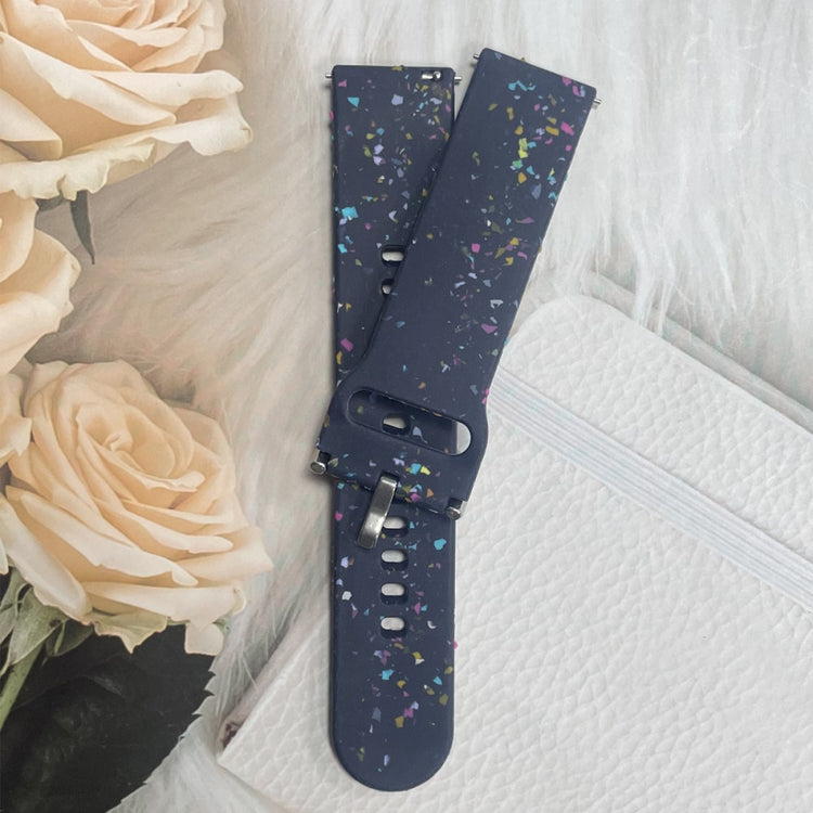 Dette udskiftningsarmbånd er lavet af højkvalitets silikone, hvilket gør det behageligt at bære og nemt at matche med tøj. Det har et mønstret design med en multi-hul og stiftspænde, så det er let at justere størrelsen til din håndled. Armbåndet passer til flere smartwatches, herunder Samsung Galaxy Watch3 og Huawei Watch GT 2.