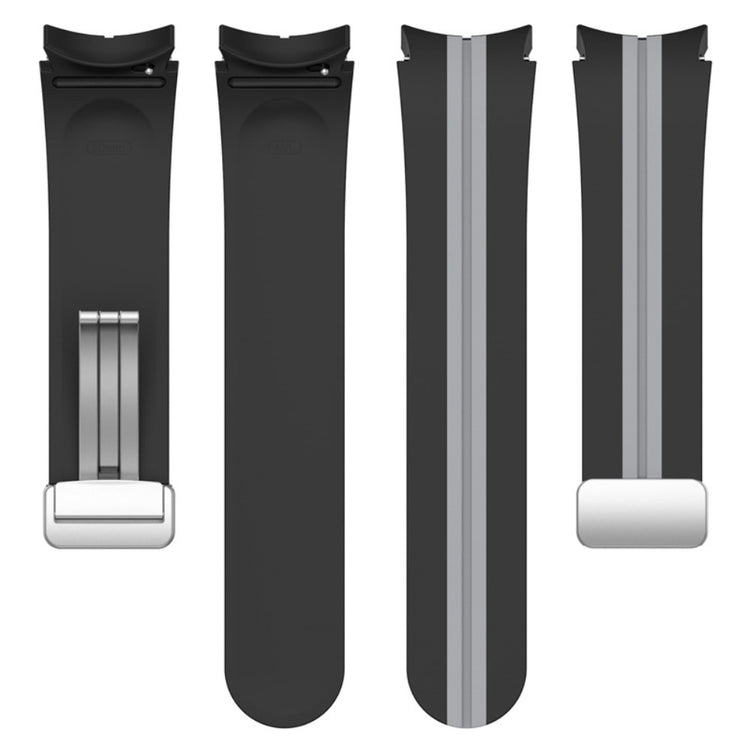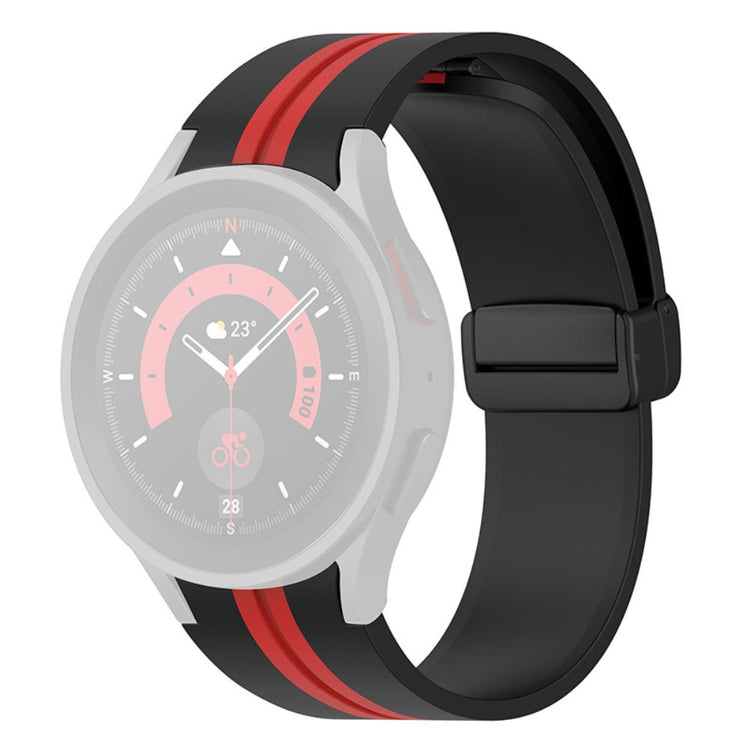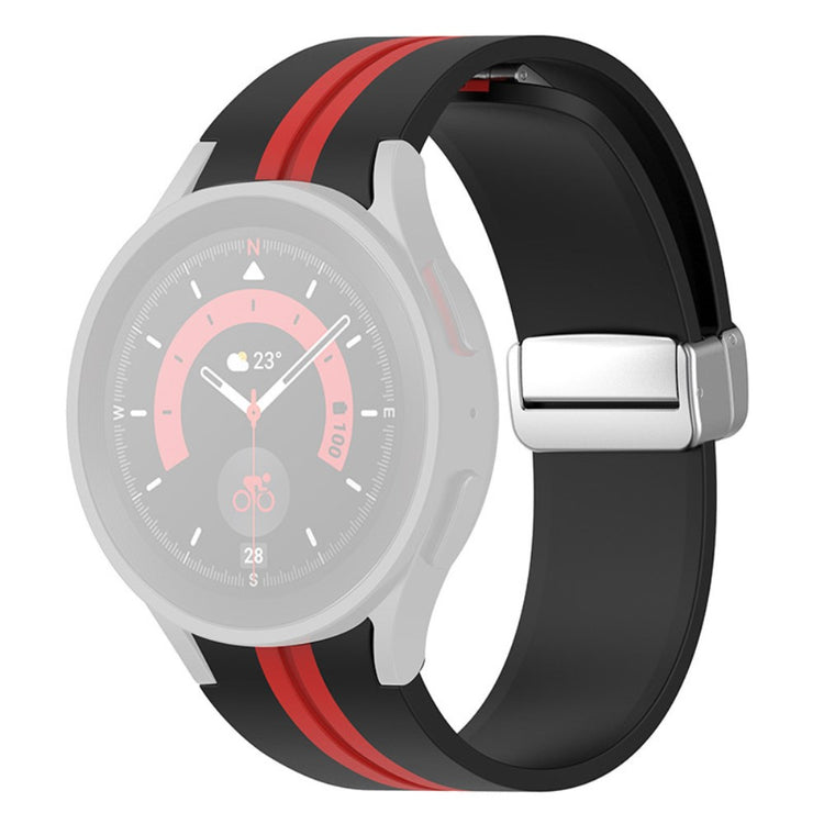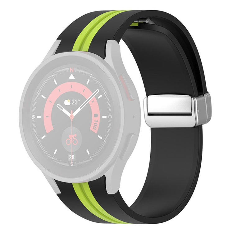 Dette er et silikone erstatningsrem til Samsung Galaxy Watch, der er produceret af miljøvenligt materiale, hvilket gør det slidstærkt. Remmen har en sølvfoldningsspænde, så den nemt kan justeres til din håndledsstørrelse og er designet med unik tofarvet stil, der giver et sporty udseende. Den passer til modellerne Galaxy Watch 5, 5 Pro, 4, og 3 41mm, hvilket gør den til en ideel erstatning for en gammel eller ødelagt rem.