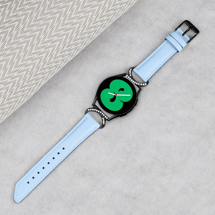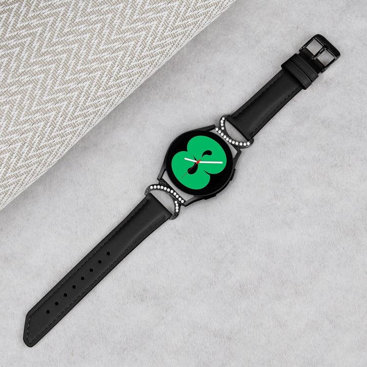 Hvis du overvejer at opgradere din ursrem, er denne erstatningsrem et fremragende valg. Den er lavet af splitleder, som sikrer en blød og komfortabel pasform, perfekt til daglig brug. Det elegante design med rhinsten og D-formet metalforbindelse giver et stilfuldt udseende, der vil skille sig ud. Remmen er udstyret med en rustfri stålspænde samt et design med flere huller, som gør det nemt at justere størrelsen efter behov. Den skrå form på remmens ende tilføjer en ekstra dimension af chik og smuk stil. Denne rem er den ideelle løsning til at erstatte en gammel eller beskadiget rem og er kompatibel med Samsung Galaxy Watch 3 41mm, Watch 5 40mm/44mm og andre ure med 20mm remme. Giv dit smartwatch et nyt liv med denne stilfulde rem!