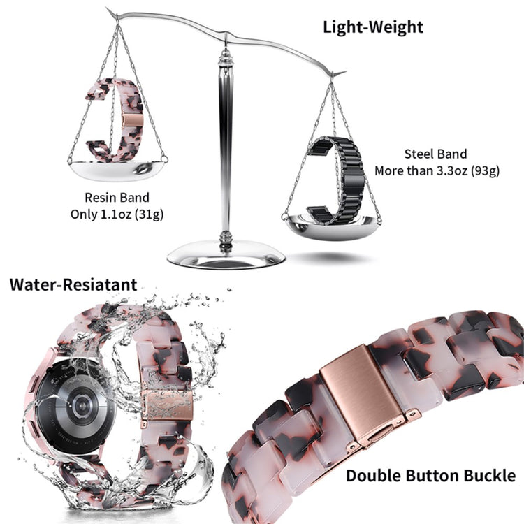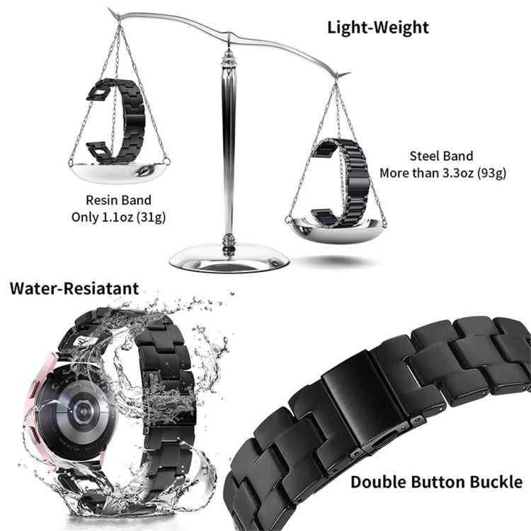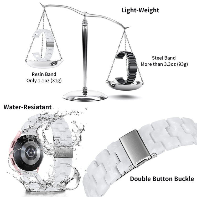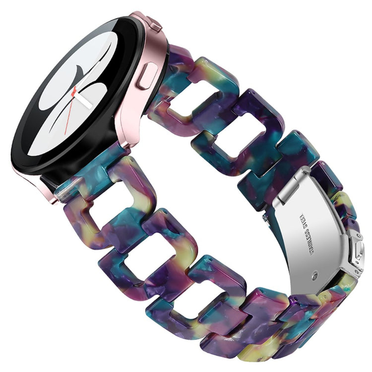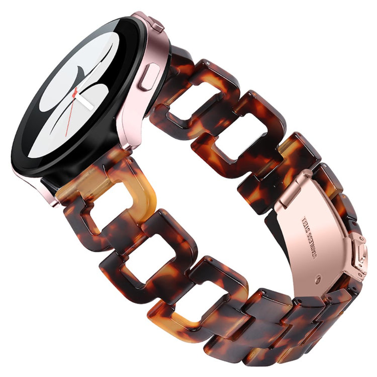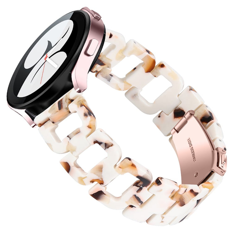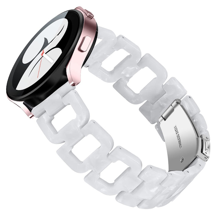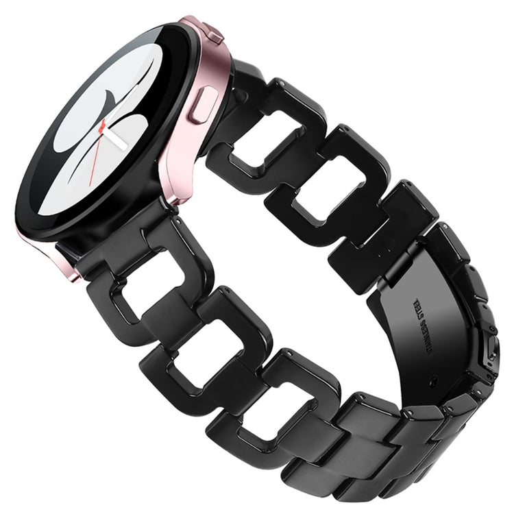 Hvis du overvejer at opgradere dit smartwatch, er dette rem til Samsung Galaxy Watch4 Active et fremragende valg. Fremstillet af højkvalitets rustfrit stål og harpiks sikrer dette produkt både skønhed og holdbarhed. Den fine håndværksmæssige finish gør remmen elegant og stilfuld, hvilket giver dig mulighed for at personliggøre dit smartwatch og gøre det til et unikt accessory. Med en praktisk klap i rustfrit stål er det let at tage remmen af og på, så du kan skifte stil alt efter anledning. Hver enkelt harpiksdel er nøje poleret af erfarne håndværkere, hvilket gør dem solide og glatte, og giver en behagelig følelse på håndleddet. Dette er den ideelle erstatning for din gamle, knækkede rem. Med en omkreds på 5-8,1 tommer og en bredde på 20 mm passer den perfekt til mange brugere. Gå ikke glip af muligheden for at forbedre dit smartwatch med denne fantastiske rem!