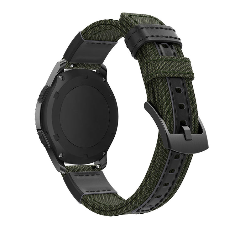 Der er mange gode grunde til at købe dette bånd til dit smartwatch. Først og fremmest er materialet en kombination af højkvalitets ægte læder og holdbart canvas nylon, hvilket sikrer, at båndet er modstandsdygtigt over for deformering og slide. Desuden har det et flere hullers design, der gør det let at justere størrelsen, så det passer perfekt til dit håndled. Den rustfrie stålspænde gør det nemt at tage båndet af og på, og hullerne på remmen gør det endnu lettere at tilpasse det efter dine behov. Dette bånd er den ideelle erstatning for dit gamle, ødelagte bånd og kræver ingen værktøjer for at montere – det er hurtigt og nemt at sætte på. Med en bredde på 22 mm og en vægt på kun 26 g er det designet til at være komfortabelt at bære hele dagen. Det er også kompatibelt med en lang række forskellige smartwatches, hvilket gør det til et alsidigt valg for enhver ejer af et smartwatch.