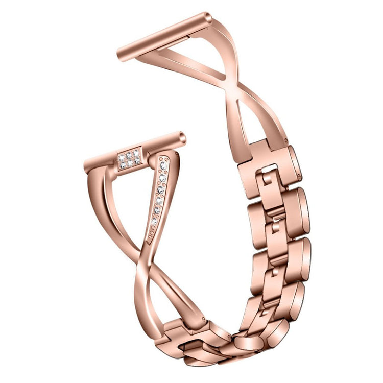 Dette X-formede urrem i aluminiumlegering er holdbart og har et stilfuldt design med rhinsten, der gør det iøjnefaldende. Remmen er svedafvisende, åndbar og allergivenlig, hvilket gør det til en perfekt personliggørelse af dit ur. Den er kompatibel med flere modeller, herunder Samsung Galaxy Watch 42mm og Garmin-ure, og er et fantastisk valg som erstatning for en ødelagt rem.