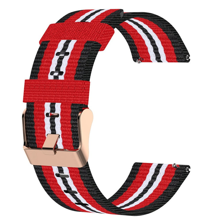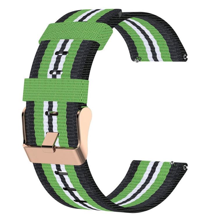 Denne sporty vævede urrem er lavet af nylon-kanvas, som er åndbart, slidstærkt og ikke deformeres let. Det unikke design tilføjer et stilfuldt element til dit ur. Spænde-lukningen sikrer hurtig justering og sikker fastgørelse.