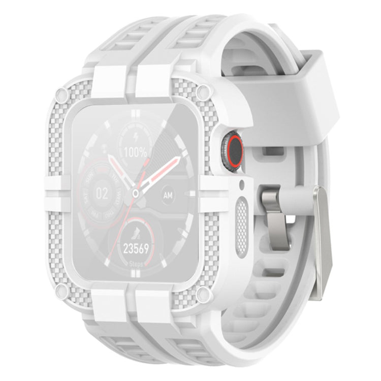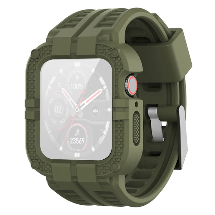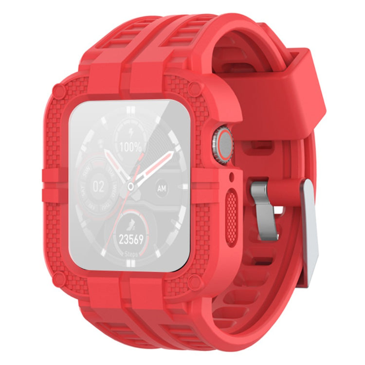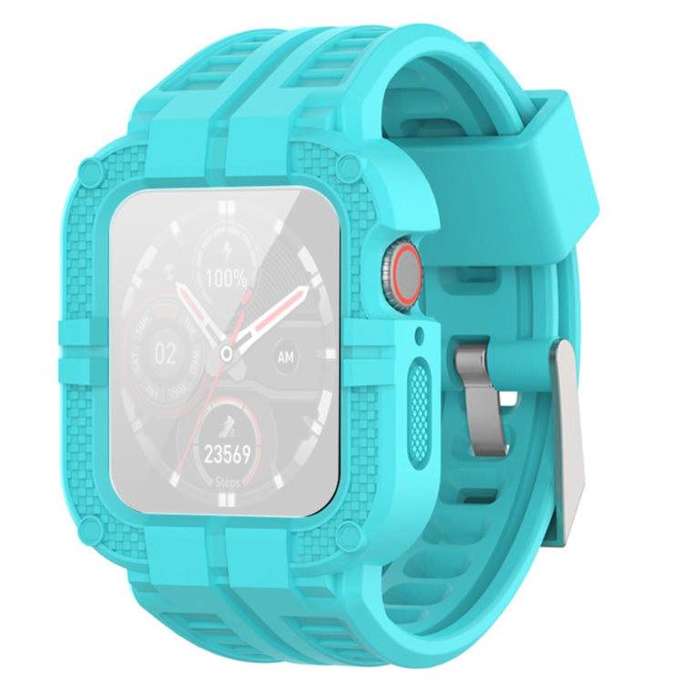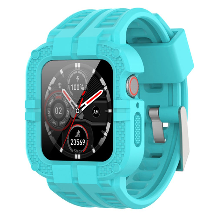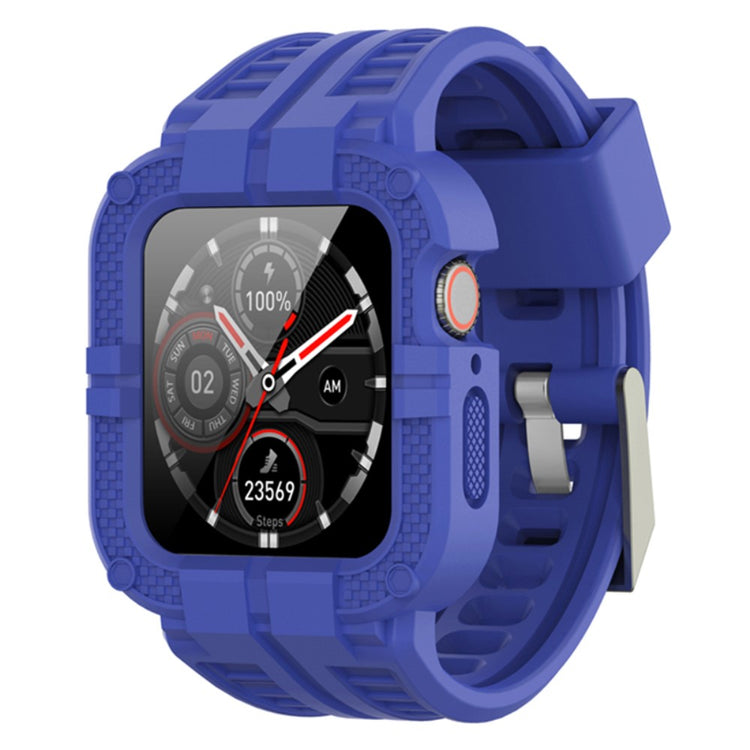 Denne 2-i-1 urremmen med cover er kompatibel med Apple Watch Series 1 / 2 / 3 38mm / 4 / 5 / 6 / SE / SE(2022) 40mm / 7 41mm / 8 41mm. Den er lavet af høj kvalitet silikone, der er behagelig at have på og nem at matche med dit daglige outfit.