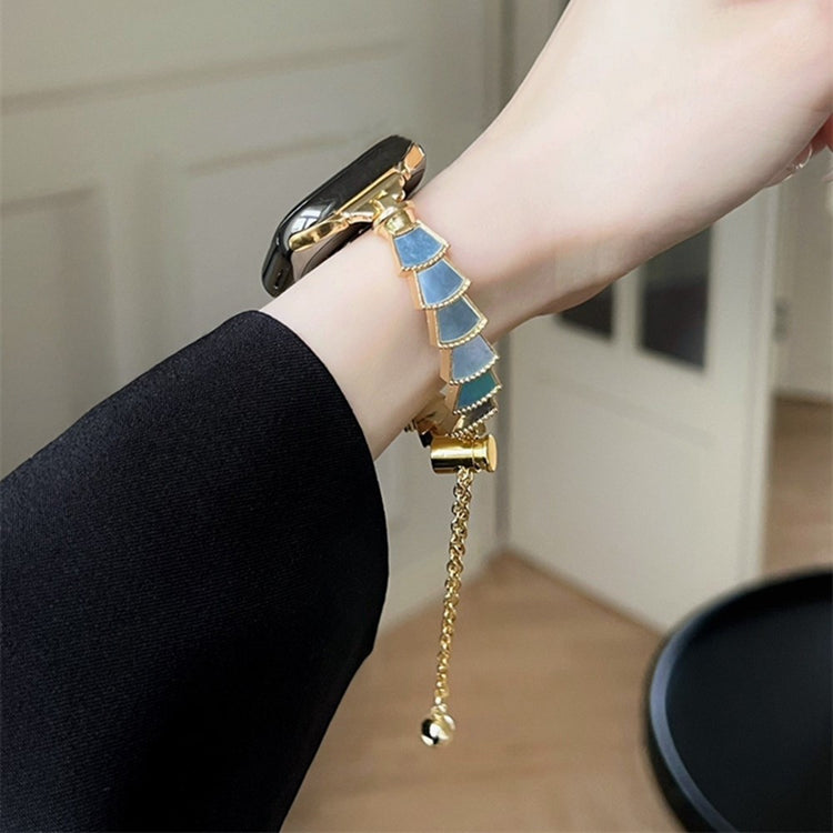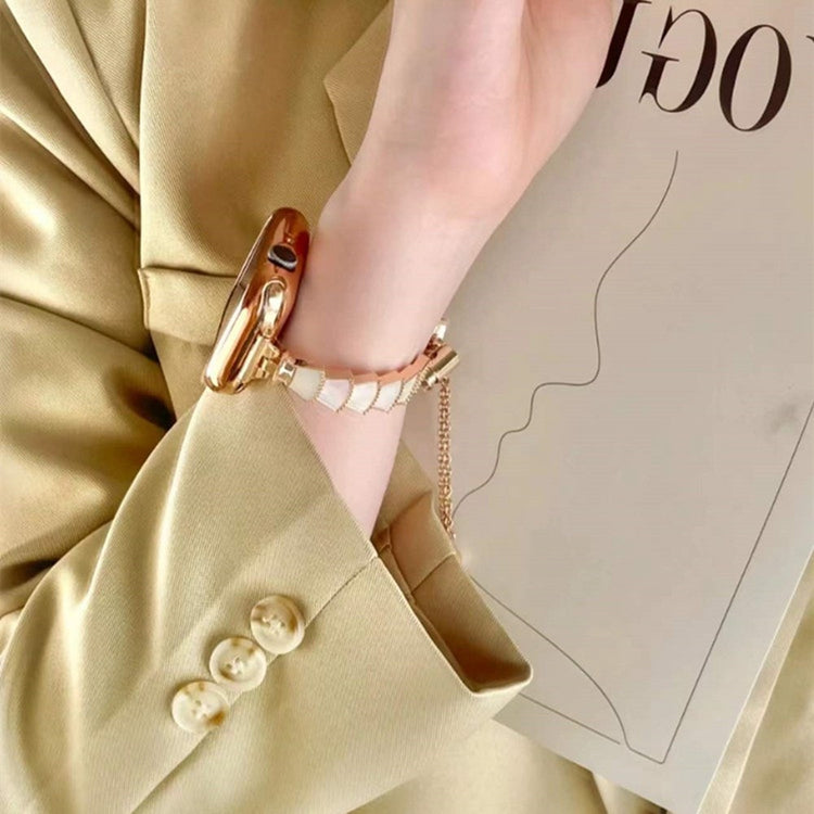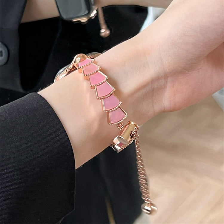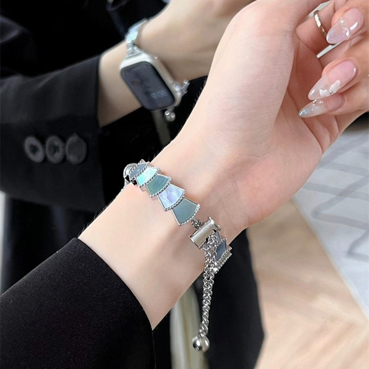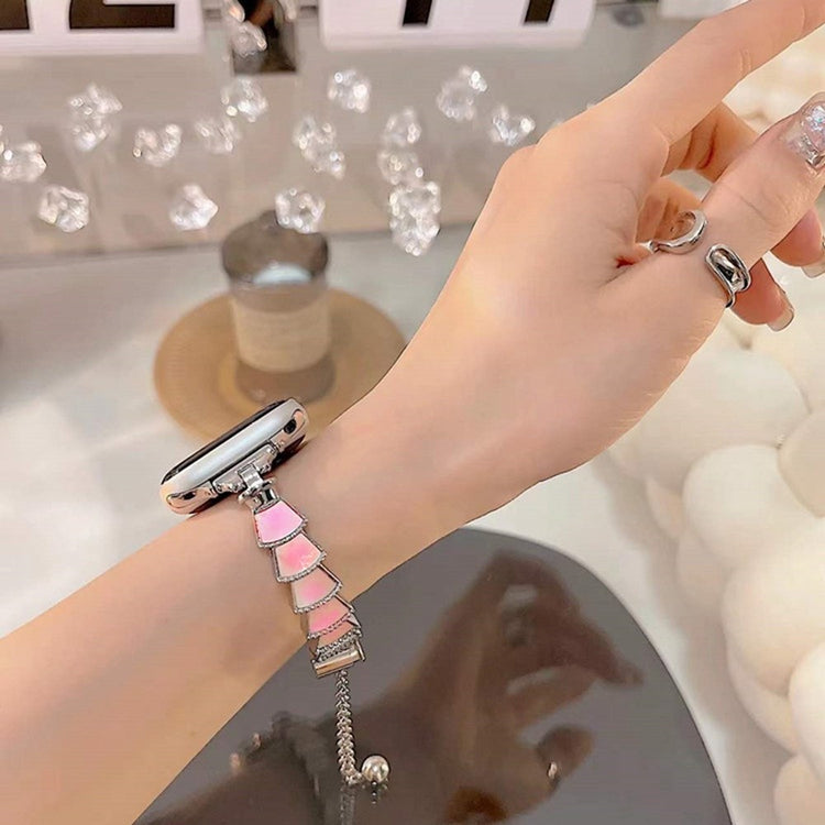 Lavet af kvalitetsmateriale, denne urrem kan bæres i lang tid. Skalstykker tilføjer stilfulde elementer til denne urrem. Med detaljeret håndværk og glat overflade, behagelig at have på. Tryk på den lille cylinder for at justere længden, så den passer til dit håndled. Flere farver til valg, der opfylder forskellige stilbehov. En ideel urrem udskiftning til din gamle, ødelagte.