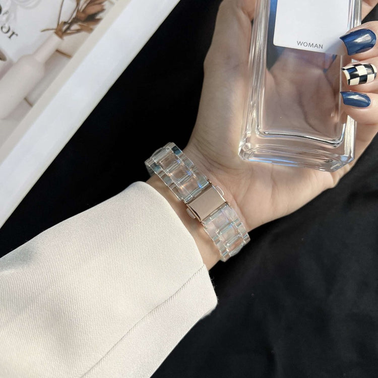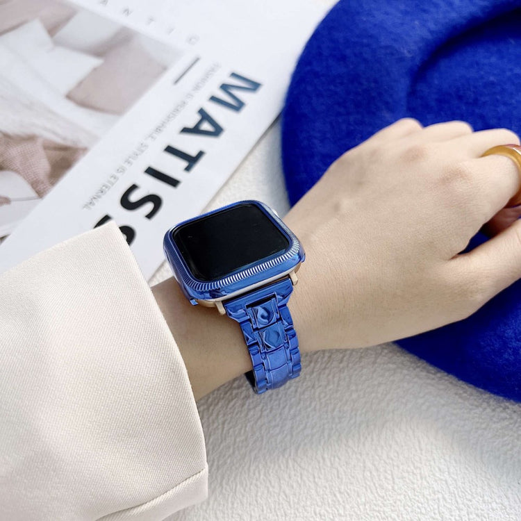 Dette armbånd er den perfekte erstatning til dit gamle, brækkede urrem. Det er fremstillet af akryl, som gør det vandafvisende og skidtafvisende, hvilket sikrer, at det forbliver i god stand i lang tid. Med sit elektroplaterede design får det en blank metallisk glans, der tilføjer et elegant touch til dit Apple Watch. Remmen har en metal sammenklappelig lås, som giver ekstra sikkerhed og gør det nemt at tage remmen af og på. Udover funktionaliteten giver dette armbånd et komfortabelt bæreoplevelse og forbedrer dit ur’s udseende, hvilket gør det til en ideel løsning for enhver, der ønsker at opgradere deres bånd. Vælg den rette størrelse for dit håndled, som spænder fra 160mm til 220mm, og oplev forskellen med en rem, der er både stilfuld og praktisk.