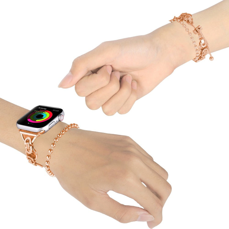 Dette armbånd til Apple Watch er lavet af premium rustfrit stål, hvilket gør det holdbart og stærkt. Den glatte overflade og den detaljerede håndværk sikrer, at det er komfortabelt at have på hele dagen. Med sit to-ræds design er armbåndet både stilfuldt og elegant, hvilket vil give dit ur et løft i udseende. Det er den perfekte erstatning for dit gamle eller beskadigede armbånd, og det vil uden tvivl vise din gode smag. Desuden passer det til et bredt udvalg af håndledsstørrelser, hvilket gør det til et universelt valg for mange brugere. Hvis du ønsker at forbedre dit Apple Watch's look og komfort, er dette armbånd et fremragende valg.
