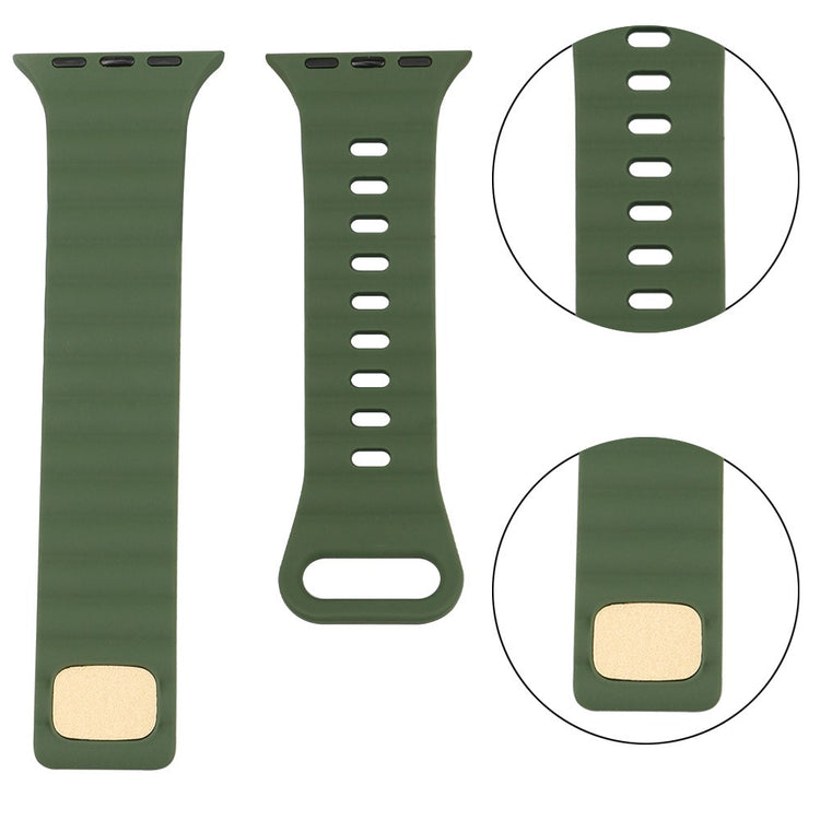 Denne urrem i silikone er kompatibel med Apple Watch Series 9, 8, 7 (41 mm), 6, 5, 4, SE, SE (2022), SE (2023) (40 mm), 3, 2 og 1 (38 mm).