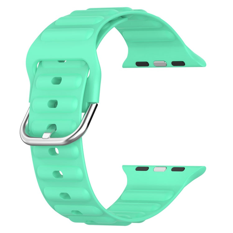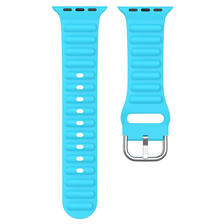 Der er mange gode grunde til at købe dette urrem til din Apple Watch. Først og fremmest er det lavet af højkvalitets silikone med et bølge-design, hvilket gør det komfortabelt at bære hele dagen. Materialet er skånsomt mod huden, hvilket betyder, at det ikke forårsager allergiske reaktioner. Det er også vigtigt, at spændet på uret er fremstillet af kvalitetsmaterialer, der sikrer lang holdbarhed. Desuden gør det smarte design med flere huller og et kvadratisk spænde det let at justere størrelsen efter behov. Uanset om du skal på arbejde, til en fritidsaktivitet eller en anden dagligdags anledning, kan dette rem være den ideelle erstatning for dit gamle eller ødelagte urrem. Det findes i mange farver, så du kan nemt finde en der passer til din stil og personlighed.