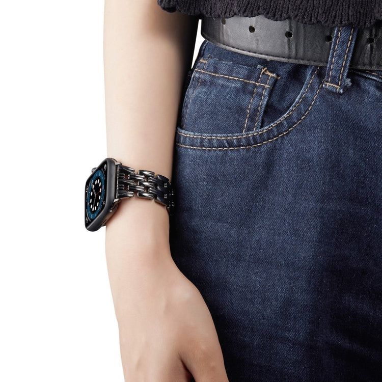 Der er flere gode grunde til at vælge dette erstatningsarmbånd til dit Apple Watch. For det første giver de hulrækker, der findes på remmen, dig mulighed for nemt at justere størrelsen, så du altid får en perfekt pasform. Desuden er det lavet af aluminiumlegering, hvilket sikrer, at det er holdbart og kan bruges i lang tid. Den bløde overflade gør det behageligt at have på hele dagen, uanset om du er aktiv eller afslappet. Hvis du har en gammel eller beskadiget rem, er dette armbånd en ideel erstatning, der opfylder dine behov for både funktionalitet og stil. Med en størrelse på 189 mm og en håndledsomkreds på 5,5 - 7,8 inches passer det til mange forskellige personer, hvilket gør det til en fantastisk investering for alle, der ønsker at opgradere deres ur.