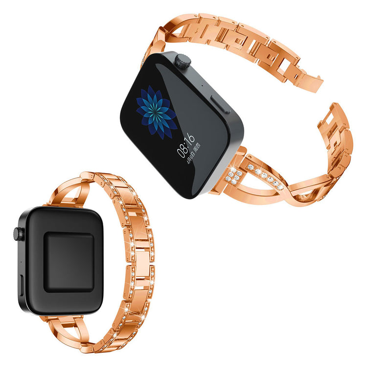 Dette produkt er fremstillet af høj kvalitet legeringsmateriale, hvilket gør det både holdbart og elegant. Det stilfulde X-formede design, dekoreret med funklende rhinsten, giver et luksuriøst udseende, som vil imponere. Det er desuden nemt at justere længden, så det passer perfekt til dit håndled. Dette er en fremragende erstatning for din ødelagte eller ubrugelige rem, og vil give din Xiaomi Mi Watch nyt liv. Specifikationerne inkluderer en håndledsomkreds på 125-190mm og en størrelse på 171 x 18mm. Vælg dette produkt for både stil og funktionalitet.