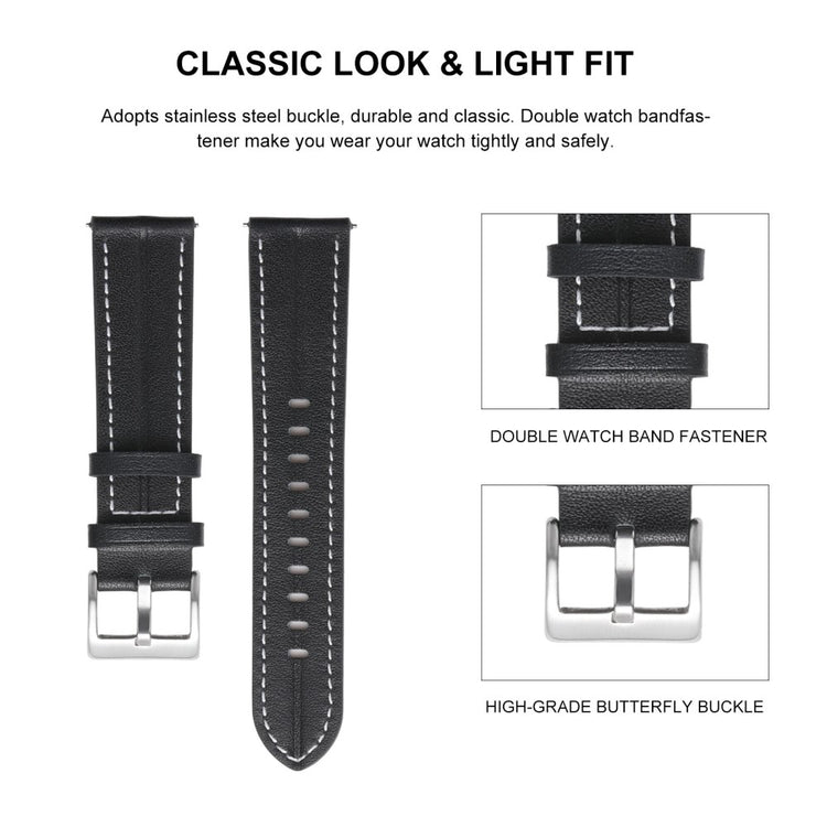 Remmen er lavet af højkvalitets ægte læder, hvilket gør den komfortabel at have på og nem at matche med dit daglige outfit. Den er justerbar med flere huller for en perfekt pasform og er velegnet til både arbejde og fritid. Dette er den ideelle erstatning for din gamle eller beskadigede rem, som passer til en lang række smartwatches.