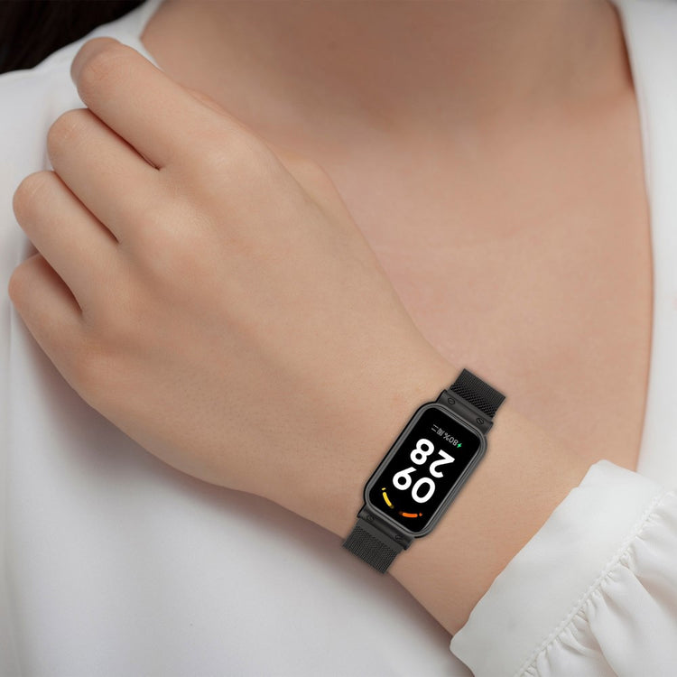 Dette armbånd til Xiaomi Redmi Band 2 er lavet af højkvalitets rustfrit stål, hvilket gør det både elegant og holdbart. Den unikke magnetlås sikrer, at dit urband sidder sikkert, samtidig med at det tilføjer både stil og bekvemmelighed. Det kombinerede urrem og urkasse giver ekstra beskyttelse samt en behagelig pasform til håndleddet.