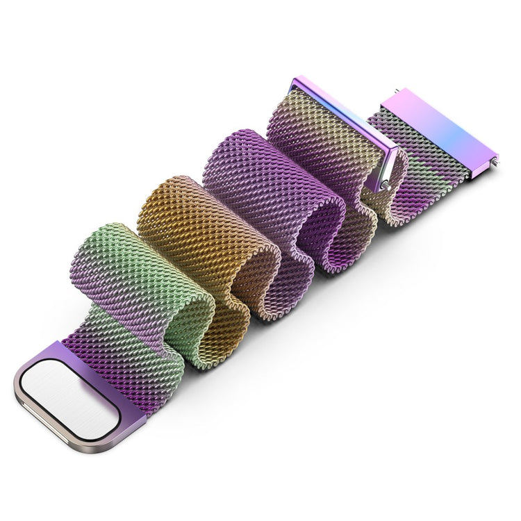 Dette 22mm magnetiske lukning Milanesiske håndledsrem er lavet af højkvalitets rustfrit stål, hvilket gør det slidstærkt og holdbart. Den åndbare mesh-band er let og behagelig at have på, og den enkle stil gør det nemt at matche med dagligt tøj. Det er et ideelt tilbehør til at personliggøre dit smartwatch.