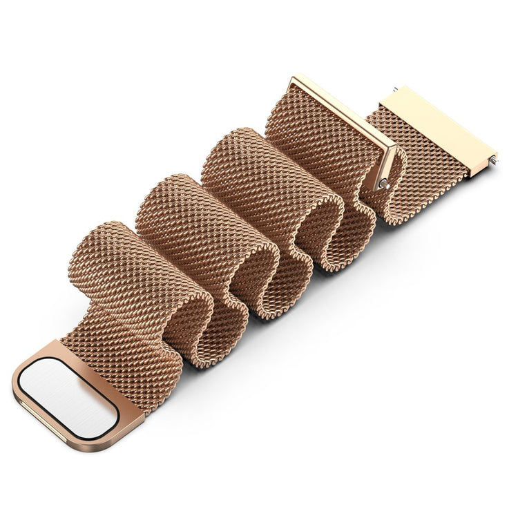 Denne 22 mm Milanese urrem med magnetisk lukning er både åndbar og komfortabel at have på. Den er lavet af høj kvalitet rustfrit stål, der gør den slidstærk og giver den et enkelt og stilfuldt udseende, som passer til ethvert outfit.