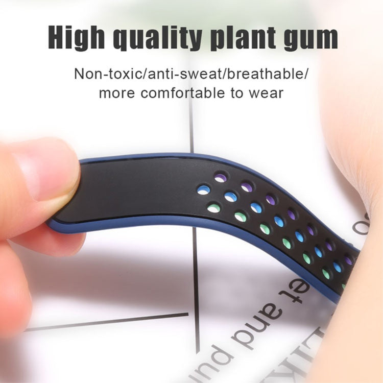 Dette armbånd er lavet af miljøvenligt silikonemateriale, der er slidstærkt og holdbart. Det har en ergonomisk design og er behageligt at have på, hvilket gør det til en perfekt erstatning for et gammelt eller beskadiget armbånd. Desuden har det en justerbar størrelse med flere huller, så det passer til håndled med omkredse fra 167 mm til 220 mm.