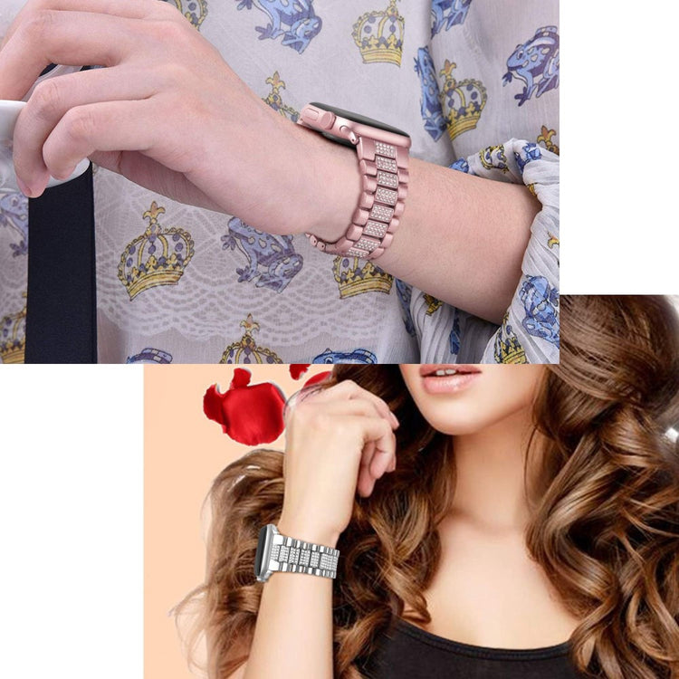 Denne urrem er fremstillet af høj kvalitet metal, hvilket gør den både særdeles holdbar og elegant. Urremmen er dekoreret med glansfulde rhinsten, der giver et stilfuldt udseende.