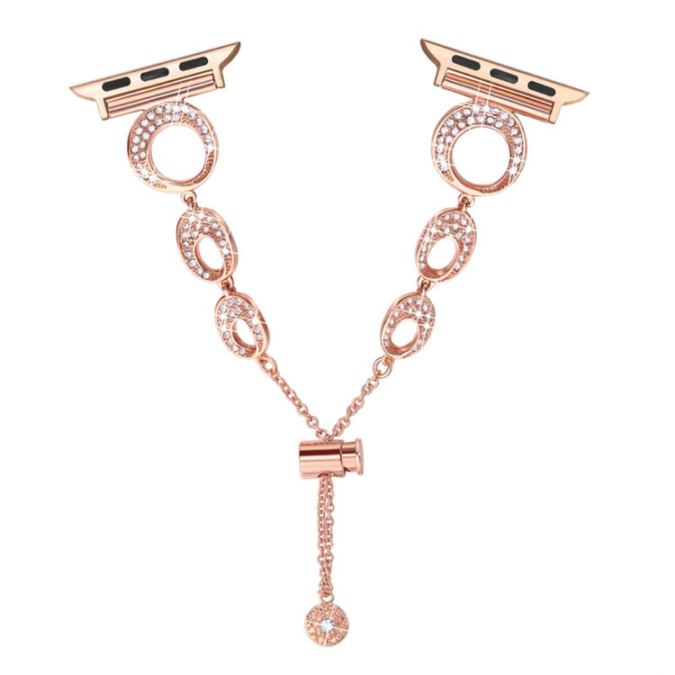 Dette armbånd til din smartwatch er et fremragende valg af flere grunde. Først og fremmest er det lavet af højkvalitets metalmateriale, som sikrer en eksklusiv og mere holdbar oplevelse. Den skinnende rhinsten dekoration tilføjer en elegant og stilfuld touch, der gør dit ur til et ægte statement-piece. Det er også velpoleret, hvilket betyder, at der ikke er skarpe kanter, og det er yderst vandafvisende og svedbestandigt, hvilket gør det behageligt at bære hele dagen. Desuden har det en justerbar glidebuckle, så du nemt kan tilpasse armbåndet til din håndledsstørrelse uden brug af værktøj. Dette armbånd er den ideelle erstatning for dit gamle eller beskadigede armbånd, og det tilføjer både kvalitet og stil til din Apple Watch.