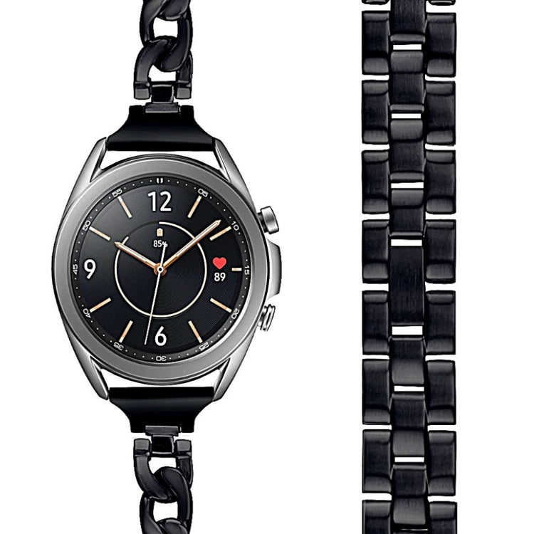Hvis du overvejer at købe et nyt urrem, er dette et fremragende valg. Dette urrem er lavet af kvalitets rustfrit stål, hvilket sikrer en eksklusiv og holdbar løsning til din Samsung Galaxy Watch 3. Det smukke design gør det ikke kun til en praktisk erstatning for dit gamle eller beskadigede urrem, men det tilføjer også stil til dit ur. Med muligheden for at justere størrelsen efter din håndleds omkreds får du en perfekt pasform, så du kan bære det komfortabelt hele dagen. Monteringen er let og simpel takket være den metal spænde, hvilket gør det nemt at installere og fjerne remmen efter behov. Med en bredde på 2 cm og en længde på 17 cm passer det til håndled med en omkreds mellem 5,2 og 8,0 tommer, hvilket gør det til en alsidig løsning for mange brugere. Gør dit ur til en stilfuld og holdbar accessory med denne fantastiske urrem!