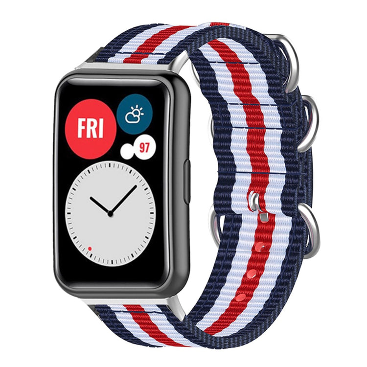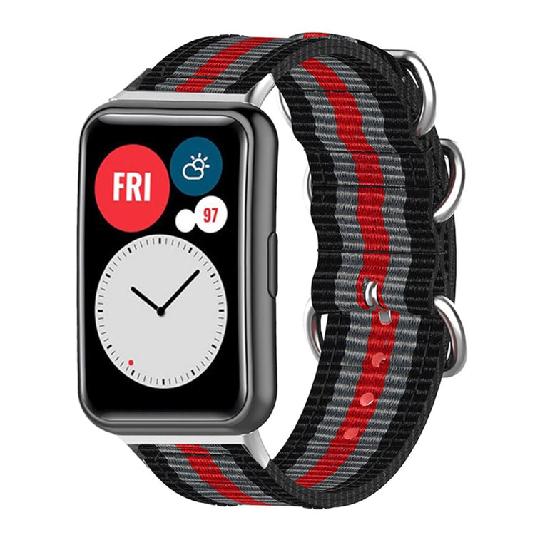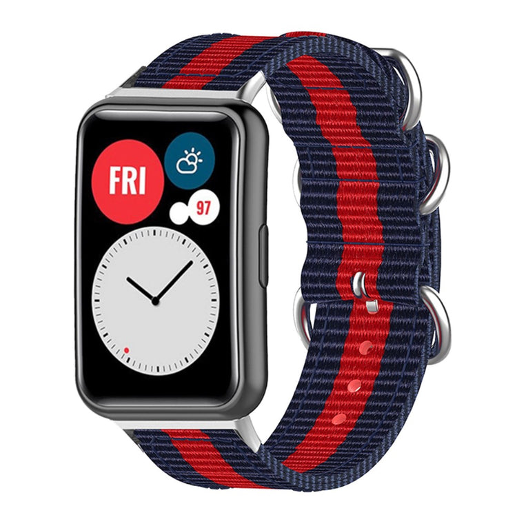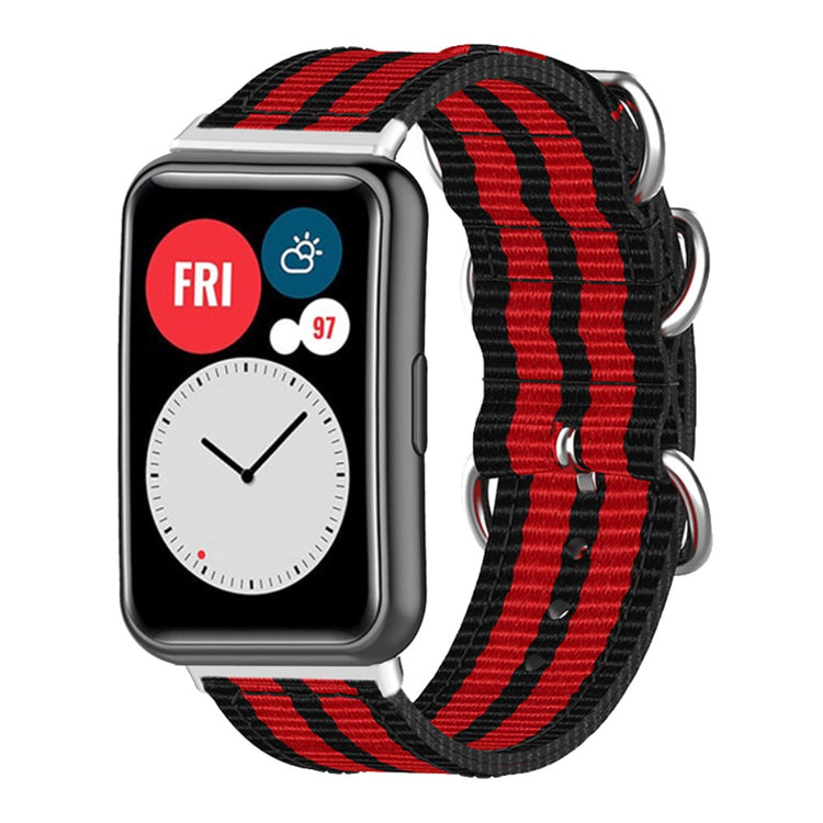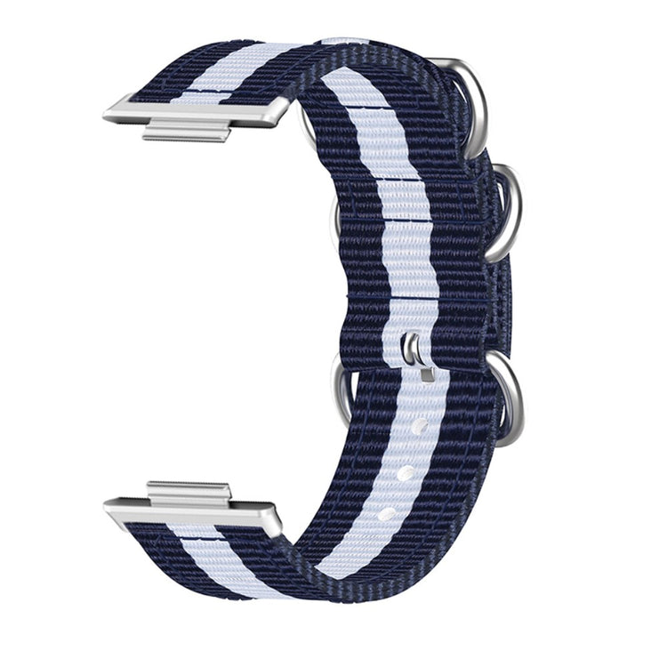Den sportslige vævede rem er lavet af nylon canvas, hvilket sikrer en behagelig og åndbar følelse. Den har et distinktivt design med 3 stainless steel ringe, der giver et enkelt men elegant udseende, og håndledsstørrelsen kan justeres frit med de mange alternativer. Dette er et ideelt remskift til din gamle, brudte rem.