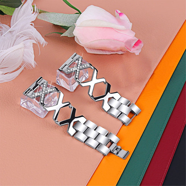 Luksuriøs urrem til kvinder med X-design i rustfrit stål med funklende rhinsten, der giver et elegant og holdbart look.