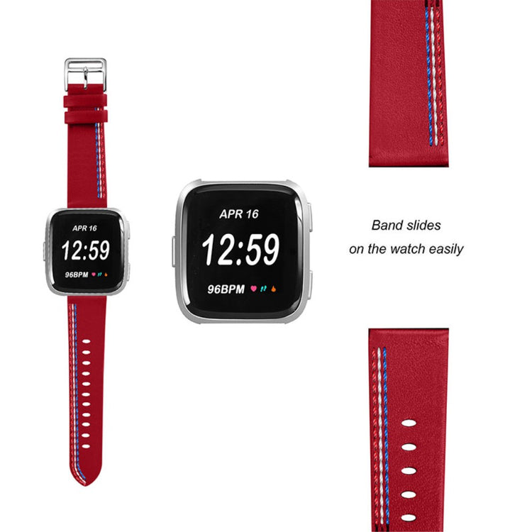 Kønt Fitbit Versa 2 / Fitbit Versa Lite Ægte læder Rem - Rød#serie_3
