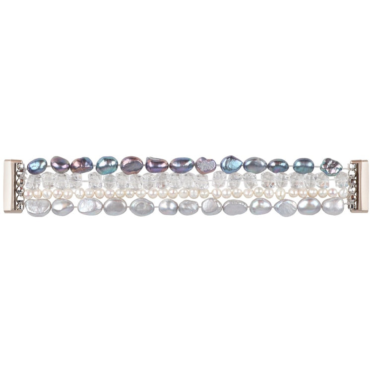 Urrem med fire rækker krystaller og perler - delikat, smuk og stilfuld.