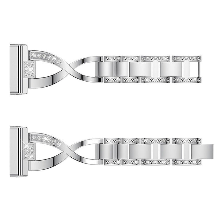 Erstat din gamle urrem med denne elegante metalliske rem med et korsdesign og glitrende rhinsten. Den er behagelig at have på og tilfører stil til din smartwatch. Den er let at installere og passer til håndled med en omkreds mellem 5.8 til 8.5 tommer.