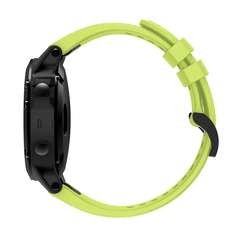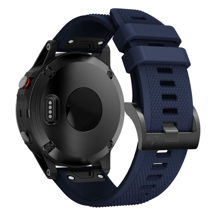 Der er flere gode grunde til at købe dette produkt: Silikone-urrem til Garmin Fenix 5, justerbar rem til smartwatch med sort trekantet spænde. Først og fremmest har denne urrem et stilfuldt og unikt design, der skiller sig ud på markedet. Den er lavet af blødt silikone material med huller, hvilket sikrer hurtig varmeafledning og høj bærekomfort. Materialet er både sikkert og miljøvenligt, så det er uskadeligt for kroppen. Remmens størrelse kan justeres afhængigt af individuelt håndleds omkreds, hvilket gør den meget fleksibel. Den er en ideel erstatning for din gamle eller ødelagte urrem. Med denne rem får du et praktisk og holdbart produkt, der passer til en bred vifte af Garmin modeller, herunder Garmin Approach S62, Fenix 6 GPS, Fenix 6 Pro GPS, Fenix 6 Sapphire GPS, Fenix 5, Fenix 5 Plus, Approach S60, Quatix 5, Quatix 5 Sapphire, MARQ Serien, Forerunner 935, Forerunner 945 og Instinct.
