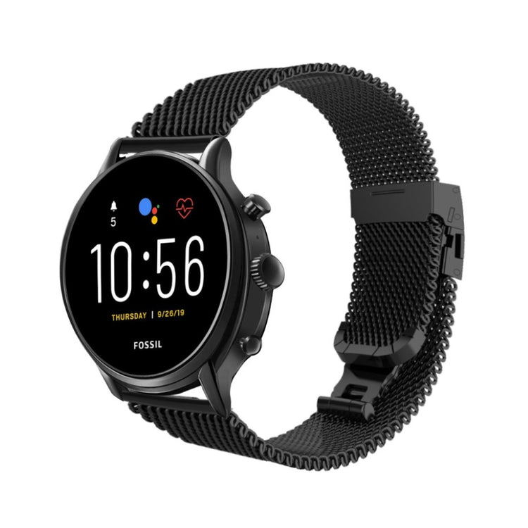 Metalnetværk i rustfrit stål, holdbar og af høj klasse. Giftfri og behagelig at røre ved med justerbar længde for komfortabel brug. Åndbart mesh-design, undgår sved og passer til Fossil Gen 5.